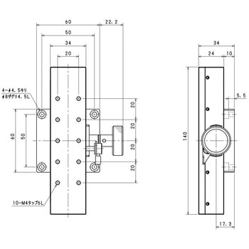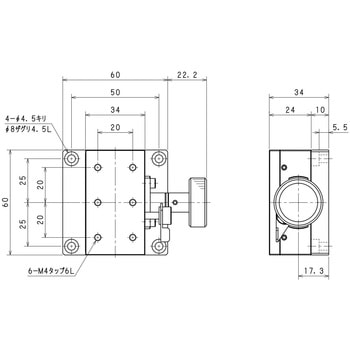 ・X軸ラックピニオンステージは、ロングストロークの粗動調整に優れたX軸ステージです。・移動用ツマミを回すと、20mm/回転で素早く移動します。・クランプで移動調整の固定・開放をして、調整ネジでステージを移動します。・駆動方式はラック・ピニオン機構(真鍮・ステンレス)、移動ガイドはアリ溝式(アルミ)を採用しており、ロングストロークの素早い調整ができます。・材質は、アルマイト仕上げのアルミニウム、三価クロムメッキの真鍮、ステンレスです。