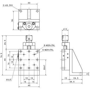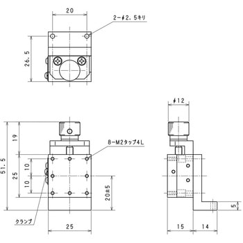 ・クランプで移動調整の固定・開放をして、調整ネジでステージを昇降します。X13-001、X13-002のクランプは、M2ナベネジです。