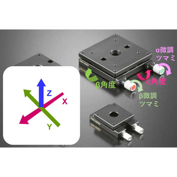 ・傾斜ステージは、微調ネジの操作によって、αβの傾斜角度を±2~3°の範囲で姿勢調整や基準出しに使用するαβ軸ステージです。・各サイズの製品は、その他の同じサイズのステージが取り付けできます。・TS2-60S、TS2-80Sは、M16 P1を利用してポール・ポールスタンドを取り付けられます。・材質は、主に黒アルマイト仕上げのアルミニウムです。