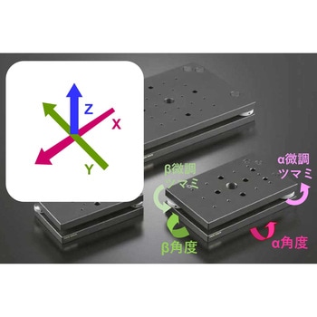 ・傾斜ステージは、2つの調整ネジでαβの傾斜角度を調整することにより、姿勢調整や基準出しに使用するαβ軸ステージです。・各ステージ面は、精密ラボジャッキの各製品(RJ-101、RJ-102、RJ-103)に対応しており、取り付けてご利用できます。・材質は、主に黒アルマイト仕上げのアルミニウムです。