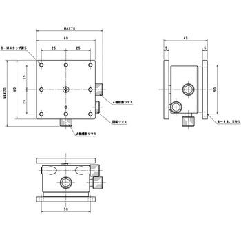 ・傾斜回転ステージは、αβθの角度を±3°の範囲で姿勢調整や基準出しが可能なαβθ軸ステージです。・球面滑り軸受の機構により、回転θと傾斜角度αβの微動調整が可能です。・光学系用途の他、測定・分析用治具としても有用です。・材質は、主に黒アルマイト仕上げのアルミニウムです。