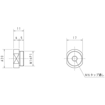 【例1】M16メネジをM6オネジへ変換(下→上)、【例2】M6メネジをM16オネジへ変換(上→下)