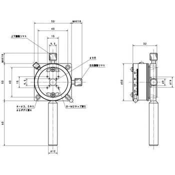 ・光軸に対し直交するYZ軸の芯出し調整が可能です。YZ軸の微動方式は、微調ネジタイプと差動マイクロメータヘッドタイプから選べます。