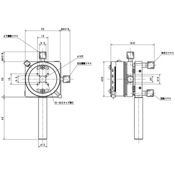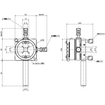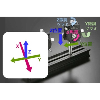 ・光軸に対し直交するYZ軸の芯出し調整が可能です。YZ軸の微動方式は、微調ネジタイプと差動マイクロメータヘッドタイプから選べます。