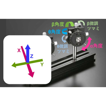 ・光軸に平行なX軸を中心とする回転(角度 α)を360°調整可能です。回転の移動ガイドにすり合わせ式を採用し、安定した調整が可能です。
