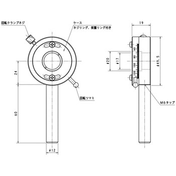 ・クランプを緩めてから、回転ツマミを使って、360°全周に粗動回転します。位置決め後、クランプを締めて回転を固定します。