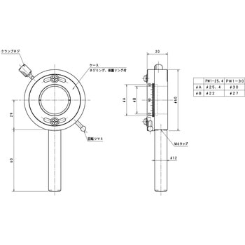 ・偏光子ホルダは、偏光フィルタや波長板などの光学素子を固定し、α角度の調整ができる1軸調整ホルダです。