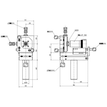 ・対物レンズ保持部は、光軸方向 (X軸) のフォーカス微動調整が可能です。