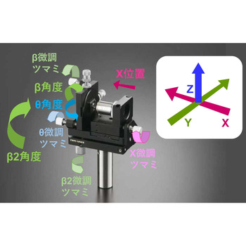 ・光ファイバ素子保持部は、キネマティック機構により支点を基準としたあおり角度(角度 βθ)の微動調整も可能です。
