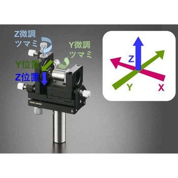 ・光ファイバ素子保持部の位置決めは、光軸に対し直交するYZ軸につき、差動マイクロメータヘッドによる芯出し調整が可能です。
