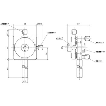・光軸に対し直交するYZ軸の芯出し調整が可能です。YZ軸の微動方式は、微調ネジタイプと差動マイクロメータヘッドタイプから選べます。