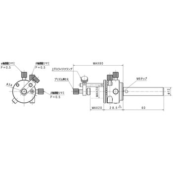・プリズム押え部が上下にスライドしますので、任意のサイズの素子を固定できます(素子のサイズにはそれぞれ範囲があります)。
