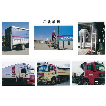 1格納時・・スペースを取りません。 車幅を気にせず取付けが出来ます。2操作は簡単・・手前に引き出すだけ。3開放時・・ハシゴとして利用できます。4軽量・・オールアルミ製で軽い。5鍵付・・盗難、いたずら防止になります。6マグネット固定・・格納時には強力マグネットで固定、走行中に開く事を防止します。