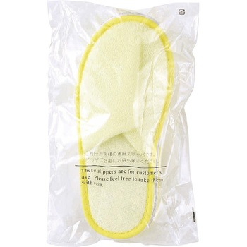 子供用スリッパです。包装フィルムに「これはお客様の専用スリッパです。ご使用後はご自由にお持ち帰りください。」の内容が7ヶ国語(日本語・英語・中国語・韓国語・台湾語)で表記されています。