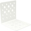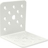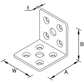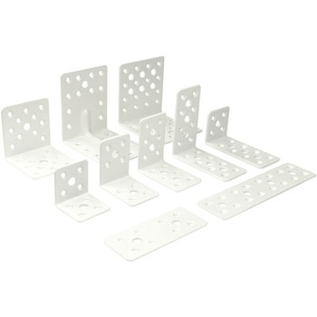 小さい穴は皿木ねじ留め付け用・大きい穴はボルト留め付け用、使用シーンに合わせて留め付ける穴を選べるマルチ金物です。