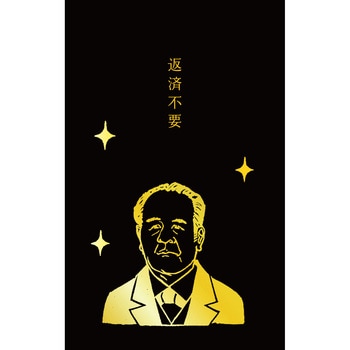 手づくりはんこ作家「史緒シリーズ」ぽち袋に箔押しぽち袋が新登場。黒色の紙にキラッとした箔押しで、ブラックユーモアを引き立てるデザインです。