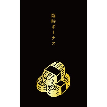 手づくりはんこ作家「史緒シリーズ」ぽち袋に箔押しぽち袋が新登場。黒色の紙にキラッとした箔押しで、ブラックユーモアを引き立てるデザインです。