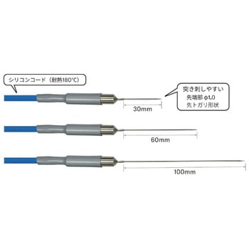 測定物に突き刺しやすいΦ1.0の極細センサ(先トガリ形状)を採用