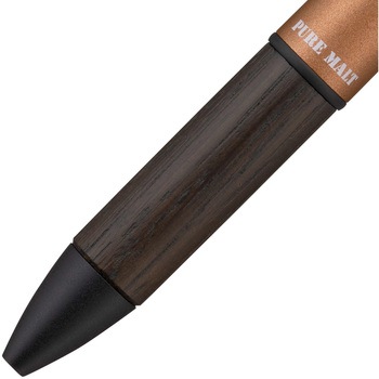 ウイスキーを熟成した樽材をペン軸に再利用した「ピュアモルト」シリーズの、”クセになる、なめらかな書き味。”の「ジェットストリーム」リフィル搭載モデルです。