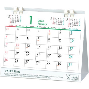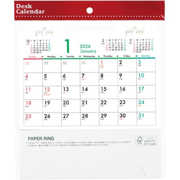 紙製リングを使用した、環境にやさしい卓上カレンダーです。紙素材のみで構成されているため、使用後は分別せずにそのまま紙ゴミとして捨てられます。両面印刷の7枚構成なので、ページが少なく扱いやすいのもポイントです。書き込みスペースも十分あるため、毎日の予定をしっかり記入できます。日付の視認性が高く、ビジネスでも家庭でも活用できる見やすいデザインで、予定管理をスマートにサポートします。シンプルで実用的なデザインで、オフィスや家庭で幅広く活躍します。環境配慮型アイテムとして、企業の名入れや贈答品にもおすすめです。