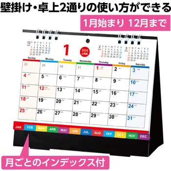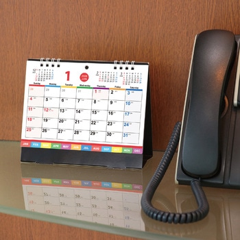 壁掛け・卓上の2WAY!見やすさ抜群の万能カレンダー!卓上タイプとしても壁掛けタイプとしても使える、実用性の高いWリングカレンダーです。カラフルなインデックスを採用し、必要な月を素早く開ける仕様になっています。書き込みスペースも十分あるため、毎日の予定をしっかり記入できます。日付の視認性が高く、ビジネスでも家庭でも活用できる見やすいデザインで、予定管理をスマートにサポートします。1年を通して快適に使える構成になっています。企業の名入れや贈答品にもおすすめです。