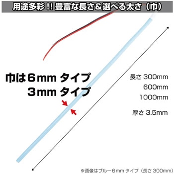 面発光COBの採用で美しい光を放ちます長さは300mm・600mm・1000mmの3種。好みの長さにカットすることも可能です幅は6mmと更に細い3mmの2タイプソフトモール特有の曲げて使用できる便利な装飾アイテムです