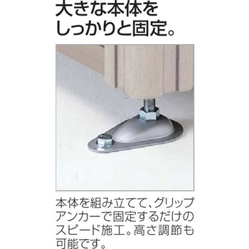 大きな本体をしっかり固定。本体を組み立てて、グリップアンカーで固定するだけのスピード施工。高さ調整も可能です。