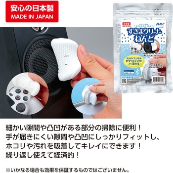 水を使えない場所にも!ピタッと吸着お掃除ねんど手が届かないスキマの汚れをピタッとくっつけて取れる便利なお掃除ねんどです。スピーカーやゲーム機、サッシなどのホコリやゴミを吸着してキレイにします。形を自由に変えられるので、ボタンまわりやサッシの溝などにもフィットします。使いたい分だけちぎって使える経済的なクリーナーです。繰り返し使えるタイプで、水を使えない場所のお掃除にもおすすめです。綿棒につければ届きにくい場所もピカピカに。日本製で安心してお使いいただけます。