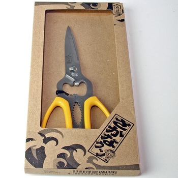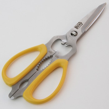 機能性を生かしたハサミでネジ蓋開け、栓抜き、他、刃部のギザ刃で食材等をしっかりガードして切れもよい商品です。