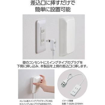 壁のコンセントにスイングタイプのプラグを下側に挿し込み、本製品を上側の差込口に挿すだけで、簡単に設置できます。