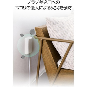 家具の裏やテレビの背面などホコリがたまりやすい場所に設置することで、プラグ差込口へのホコリの侵入を防ぎ、トラッキング現象による火災を予防します。