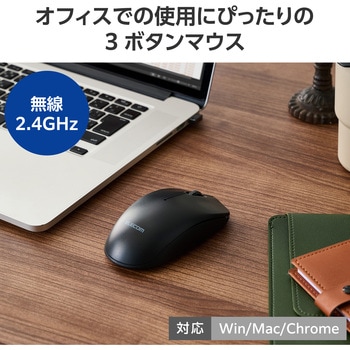 リーズナブルながらマウスの基本性能をしっかり備え、各種認証に適合。オフィスでの使用にぴったりのシンプルな3ボタンマウスです。パソコンのUSB-Aポートにレシーバーを挿すだけで使える無線2.4GHz接続モデルです。