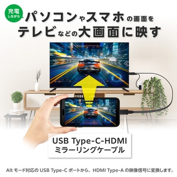 充電しながらスマホの画面をテレビなどの大画面に映すUSB Type-C-HDMIミラーリングケーブル。高画質出力と充電同時利用により、映画鑑賞やプレゼンにも最適。HDCP対応で安心してAmazon Prime、Netflix、ABEMAなどの動画配信サービスを視聴可能です。ドライバ不要で、接続するだけで即使用可。