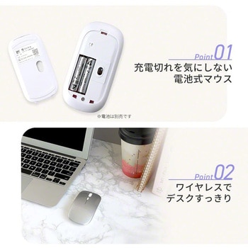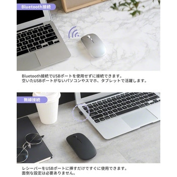 Bluetooth5.0と2.4GHz無線接続に対応し、レシーバー不要でPCやタブレットにサッと接続できます。サイズ約55×25×110mm、約50gと軽量で持ち運びも簡単。800/1200/1600dpiのDPI切替と静音スイッチ搭載で、快適・静かな操作が可能です。乾電池対応!単4乾電池2本(別売)使用で電池切れを気にせず使えます。手に馴染むシンメトリーデザインがおしゃれなモデルです。