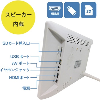 スライドショー機能によりデジタルフォトサイネージとしての使用が可能。光沢のあるグレアパネル採用。HDMI接続でPC等のディスプレイ表示モニターとして使用も可能。SDカードスロット・USBポート搭載で写真・動画等のデータを直接表示・閲覧可能。リモコン・スタンドが付属、置き型での使用の他、VESA規格(100mmx100mm)に対応で壁掛けとしての使用も可能なのでサイネージモニターとしても最適。(壁掛けスタンドは別売りです)