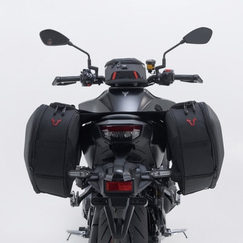 サポートアームにバッグを差し込むだけで素早く装着できます。アームは、横方向の動きを防いでバッグを安定させます。バッグを外すときにはサポートアームから簡単に引き抜くことができ、オートバイの外観を崩すことがありません。