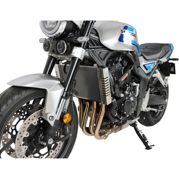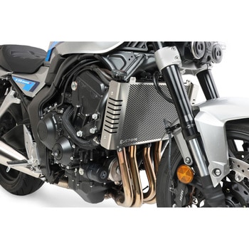トラディショナルネイキッドに似合う、機能美を兼ね備えたラジエターガード。デブリ衝突でのフィン変形による冷却効率低下やラジエターの破損を防ぎます。ネイキッドだからこそ守りたいサイドタンクのカバーと一体型で、コアに添わせた形状です。