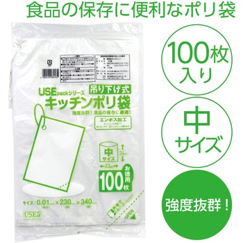 便利な吊り下げ式!サッと取り出せる強度抜群のキッチンポリ袋!吊り下げて使える便利なキッチンポリ袋です。エンボス加工で袋の口が開きやすく、片手でも簡単に取り出せます。食品の保存や調理時の一時保管など、毎日の家事に活躍します。たっぷり100枚入りで日常使いに便利です。