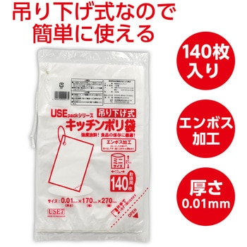 便利な吊り下げ式!サッと取り出せる強度抜群のキッチンポリ袋!吊り下げて使える便利なキッチンポリ袋です。エンボス加工で袋の口が開きやすく、片手でも簡単に取り出せます。食品の保存や調理時の一時保管など、毎日の家事に活躍します。たっぷり140枚入りで日常使いに便利です。