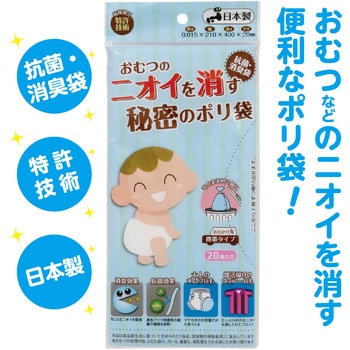 特殊加工技術によりニオイを吸着し軽減する抗菌消臭ポリ袋です。おむつや生ごみなどの気になるニオイをしっかり閉じ込めます。抗菌効果で菌の増殖も抑えられるので衛生的。マチ付きで大容量なので、大人のおむつや汗をかいたウェアなども楽々入り、気になるニオイをブロックします。厚め設計で破れにくく、携帯にも便利な20枚入りでお出かけにも最適です。