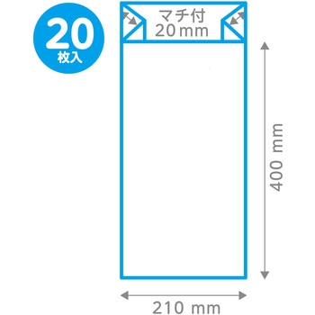 材質HDPE寸法(mm)0.015×250(210+マチ40)×400入数20枚内容量1個(20枚)