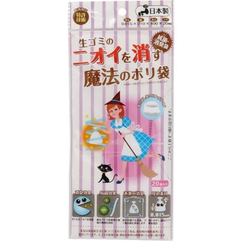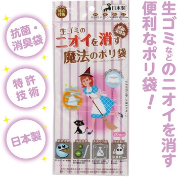 特殊加工でニオイを軽減!抗菌・消臭ポリ袋!特殊加工技術によりニオイを吸着し軽減する抗菌消臭ポリ袋です。おむつや生ごみなどの気になるニオイをしっかり閉じ込めます。抗菌効果で菌の増殖も抑えられるので衛生的。マチ付きで大容量なので、大人のおむつや汗をかいたウェアなども楽々入り、気になるニオイをブロックします。厚め設計で破れにくく、携帯にも便利な20枚入りでお出かけにも最適です。