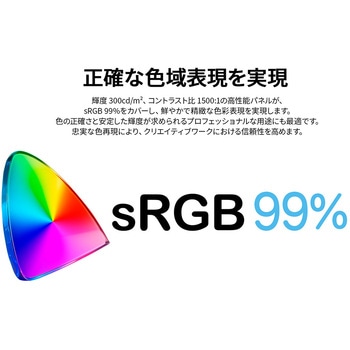 27インチのIPSパネルを搭載し、WQHD(2560x1440)解像度に対応した液晶モニターです。フルHD(1920x1080)より+78%も高精細でデスクワーク使用時には画面を広く、また写真や動画視聴の際はさらに美しく表示します。あらゆる角度から見ても色やコントラストの変化がおきにくいIPSパネルを搭載し、広視野角上下左右178°を実現します。最大輝度300cd/m2の液晶パネルはsRGB:99%の広色域に対応し、動画や写真の編集に最適です。高さ調整が可能な昇降式多機能スタンドを搭載、最大150mmの範囲(横置時)で最適な高さに画面を調整可能です。また、縦画面として使用出来るピボット(回転)機能にも対応します。スイーベル(首振り)機能は、左右各30°の範囲で動かせます。インターフェイスはHDMI 2.0 x1 (100Hz)とDisplayPort 1.2 x1 (100Hz)を搭載し、様々なタイプの機器との接続が可能です。モニター画面のフリッカー(ちらつき)、およびブルーライト(青色光)を軽減し、目の負担を軽くします。100x100mmのVESAマウントに対応しますので、別売りのモニターアームなどに使用が可能です。スピーカーは搭載しておりません。本製品には、2年間のメーカー保証が付きます。