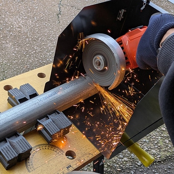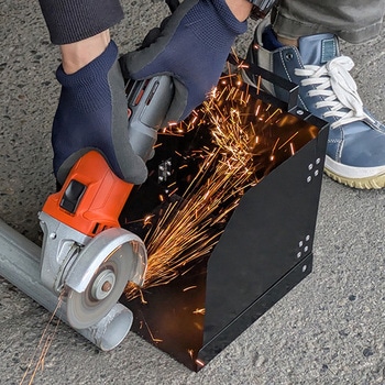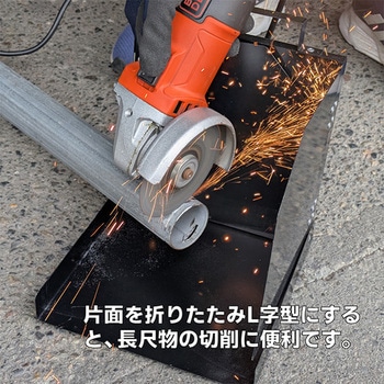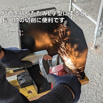 折畳み式で、簡単に片づけできて収納場所も取りません。ディスクグラインダー、アングルグラインダー作業時の火花防止に卓上や作業台での作業に最適なサイズです。小型切削パワーツールの粉塵飛び散り、破片の飛散防止に片側を畳んでL字状にすることで自由度が広がります。本体はカチオン塗装で防錆性と耐熱性に優れています。