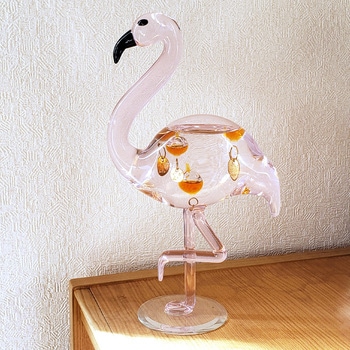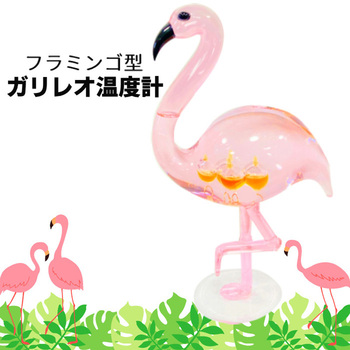 ガラスの球体が気温の変化をお知らせしてくれるフラミンゴ型ガリレオ温度計。