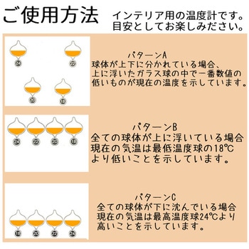 気温によって上下するガラスの球体が目安の気温を示します。