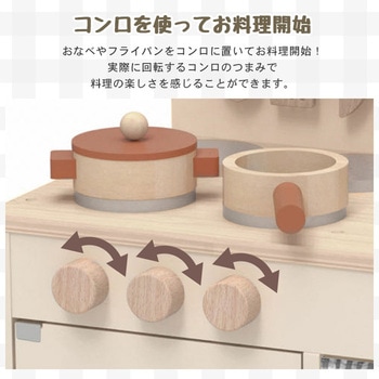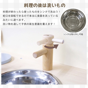 実際に回転するコンロのつまみや蛇口で料理の楽しさを感じることができます。