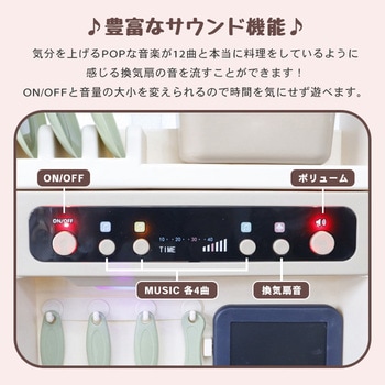 水を注ぐと実際に蒸気が出たり、シンクに水を溜めて蛇口のボタンを押すとお水が出たり、気分を上げる音楽が全部で12曲も搭載。