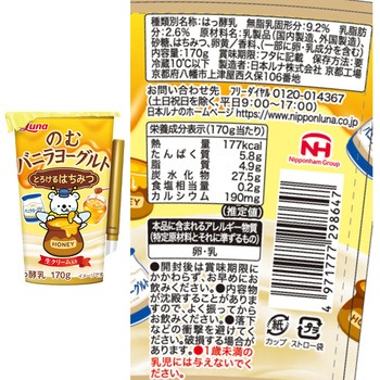 1点のみご購入の場合は、セット商品のみで梱包してお届けします。複数個購入や他の商品と一緒にご購入いただいた場合は、同梱してお届けすることがあります。[冷蔵] 日本ルナ のむバニラヨーグルト 170g×2本/[冷蔵] 日本ルナ のむバニラヨーグルト とろける はちみつ 170g×2本/を詰め合わせております。