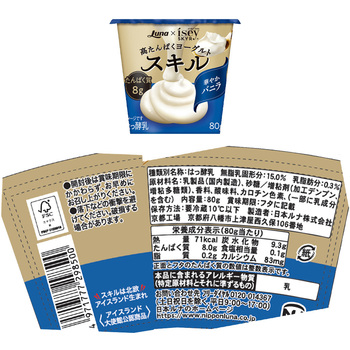 1点のみご購入の場合は、セット商品のみで梱包してお届けします。複数個購入や他の商品と一緒にご購入いただいた場合は、同梱してお届けすることがあります。[冷蔵] 日本ルナ スキル プレーン加糖 80g×2個/[冷蔵] 日本ルナ スキル 華やかバニラ 80g×2個/を詰め合わせております。